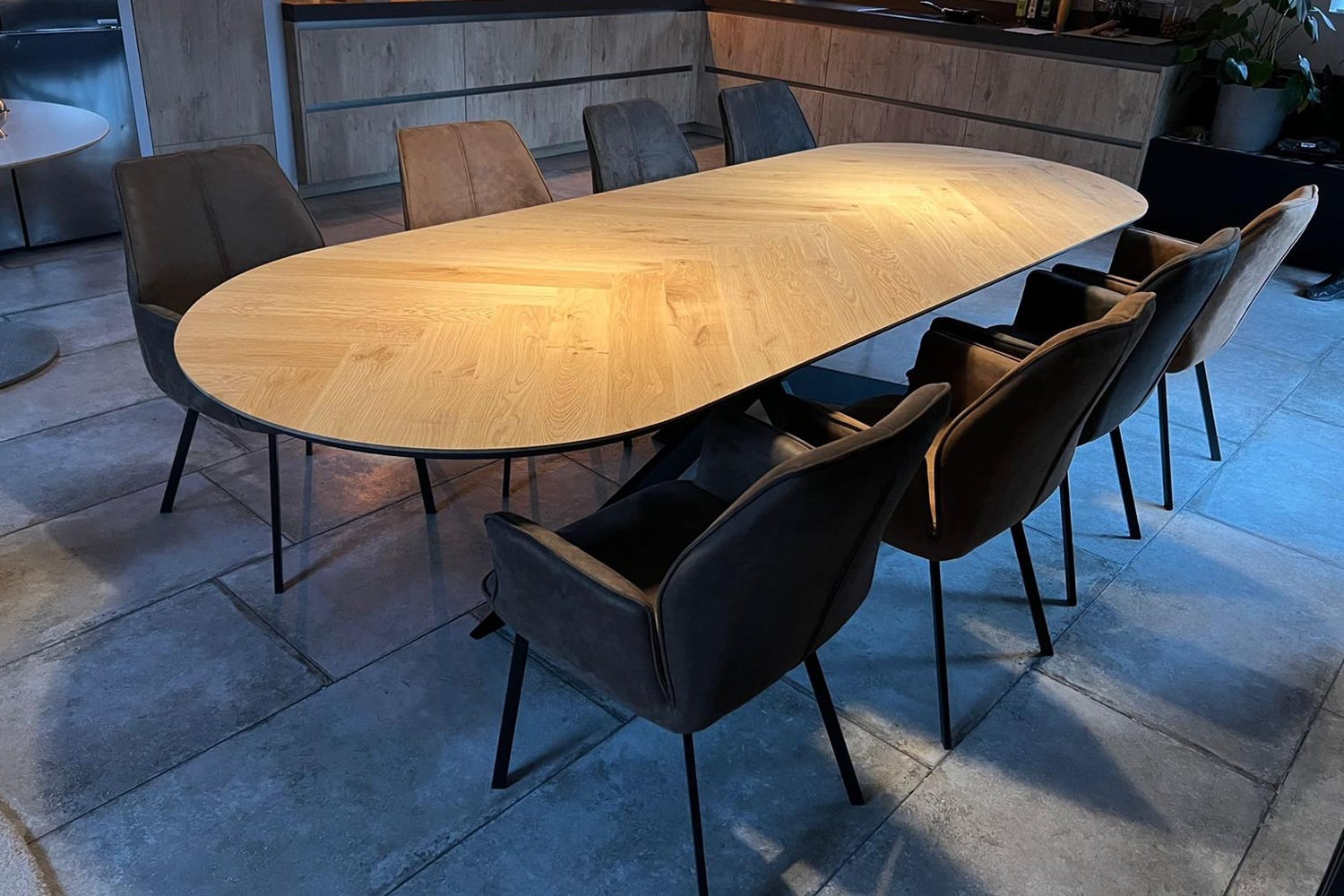 Kiest u voor deze optie, dan wordt uw tafel geborsteld. Eventuele opgevulde noesten zullen gedeeltelijk hun vulling verliezen als gevolg van het borsteleffect. Ons advies is om bij de kleur Zwart - mat te selecteren voor borstelen, zodat de kleur volledig tot zijn recht komt.