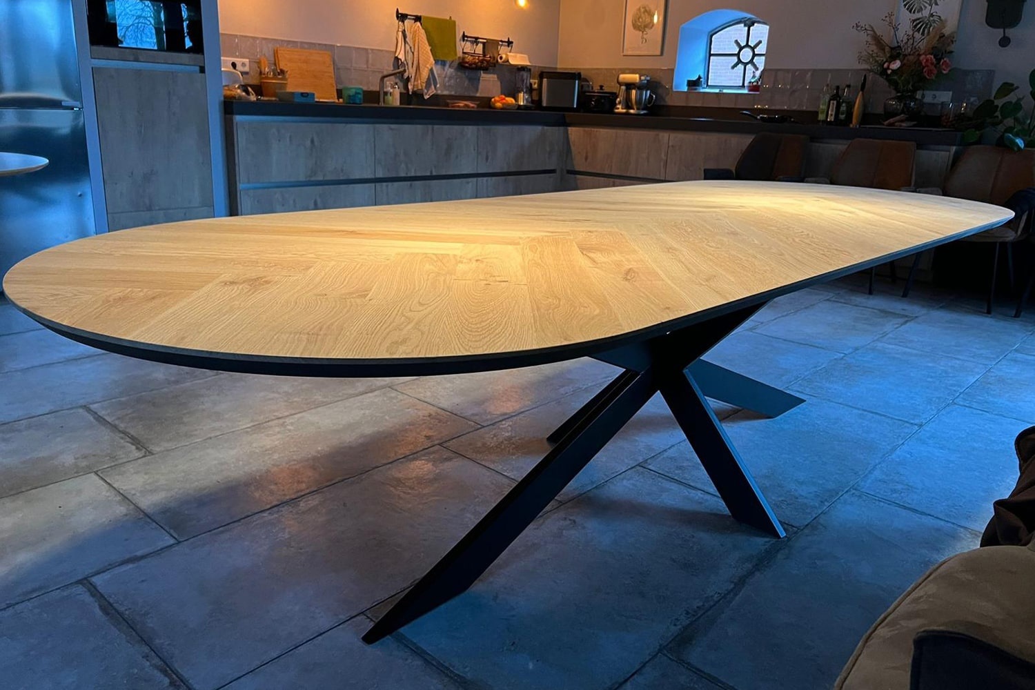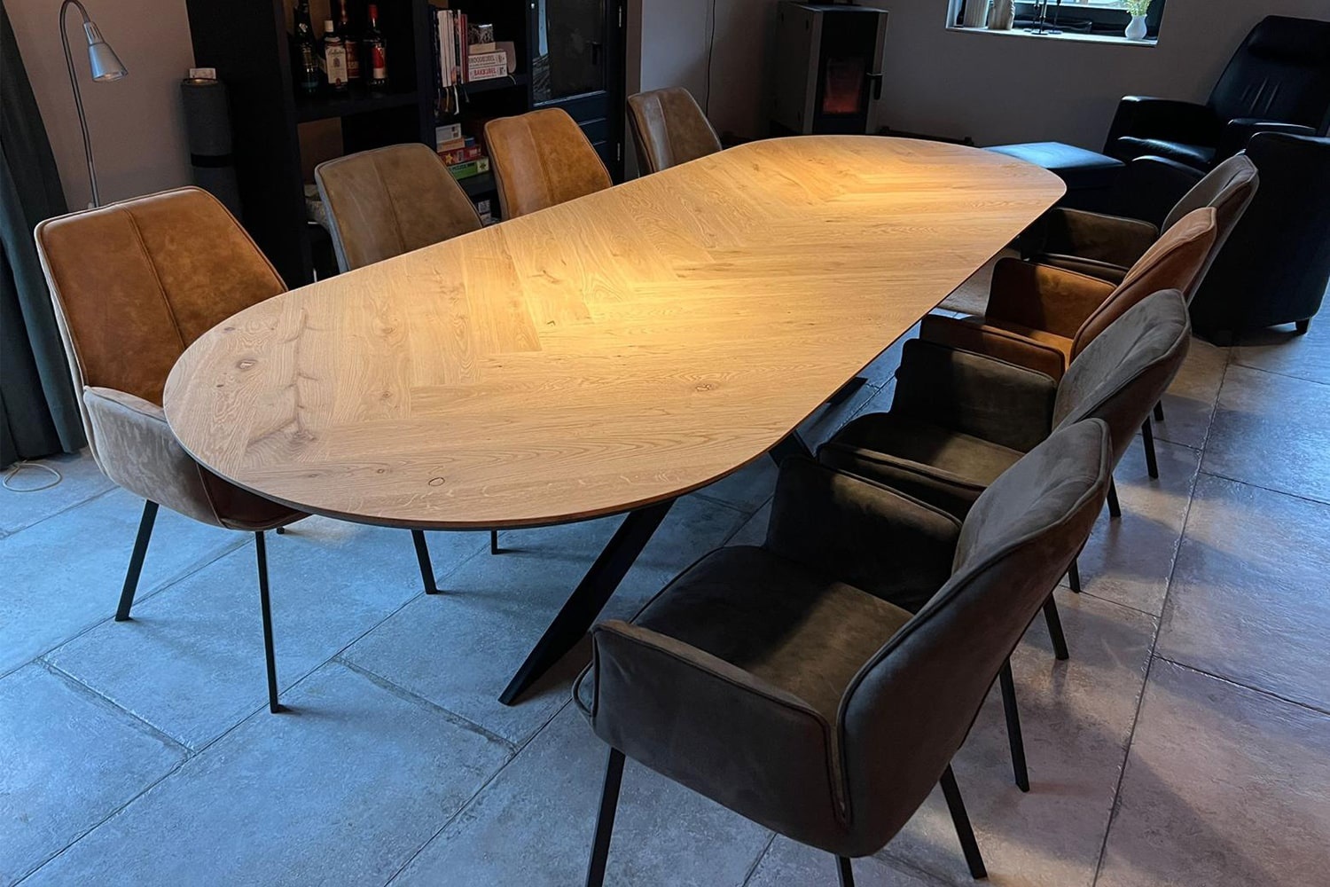 Wij hanteren een standaard tafelhoogte van ±76 cm. Dit is de hoogte gemeten vanaf de grond tot aan het bovenkant tafelblad. Wenst u een andere hoogte voor uw tafel? Geen probleem, neem dan contact op met ons voor een offerte op maat.