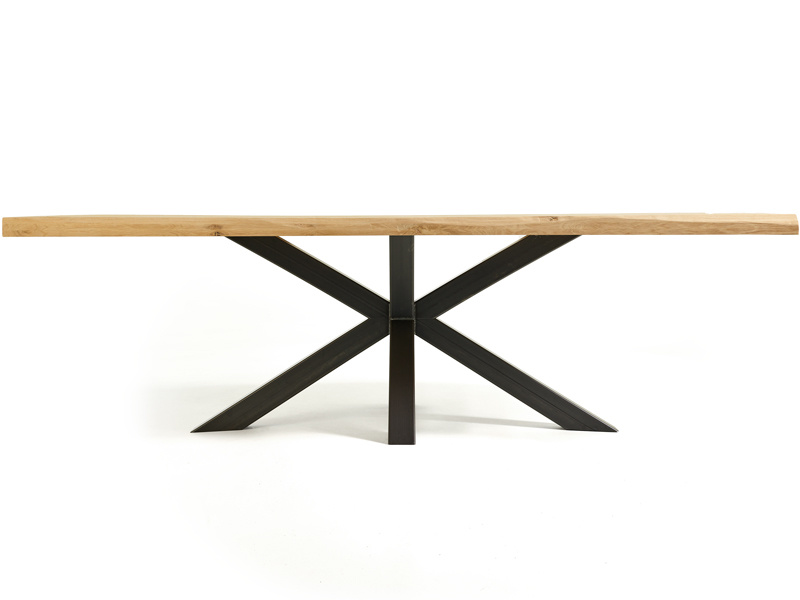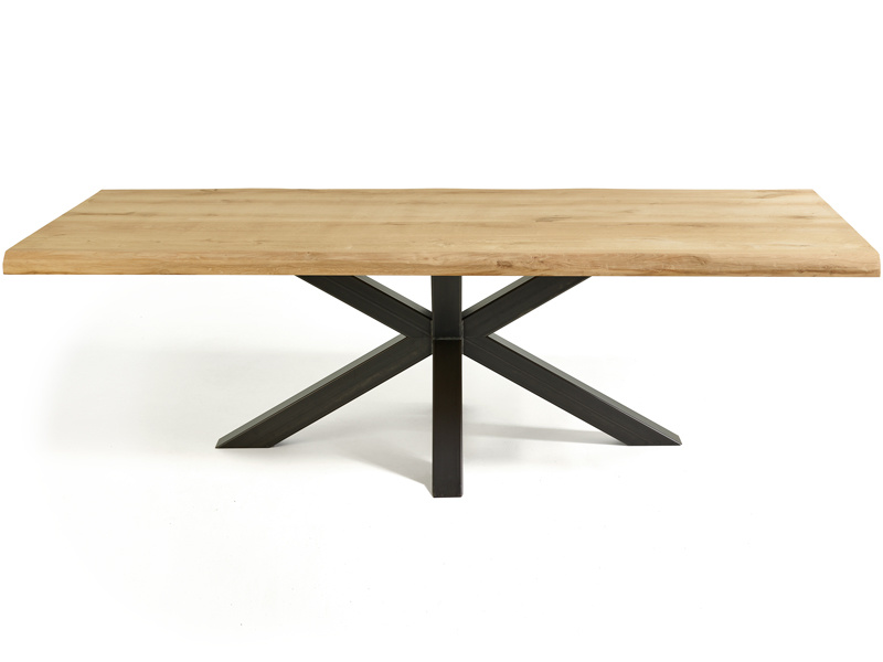 De Seraia elegante boomstamtafel is een tijdloze combinatie van natuurlijke charme en modern design. Het rechthoekige tafelblad van 240 bij 100 cm is gemaakt van Frans eiken met zichtbare noesten, wat elke tafel een uniek karakter geeft. De kunstmatige boomstamrand accentueert de natuurlijke vormen van het hout, terwijl de zwarte spinpoot zorgt voor een eigentijdse en luchtige uitstraling. Dankzij de SKYLT-afwerking blijft de warme, natuurlijke kleur van het eiken prachtig behouden.