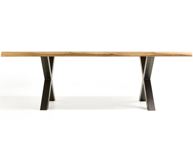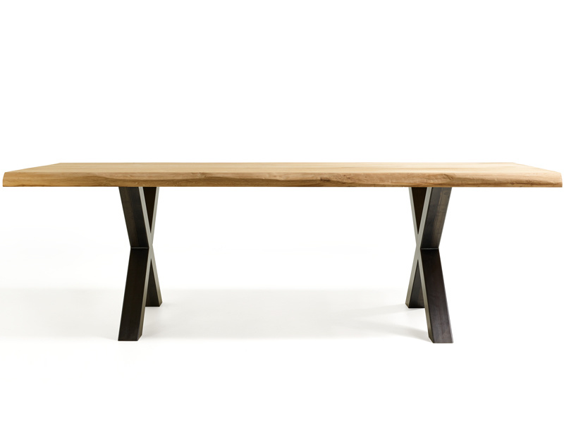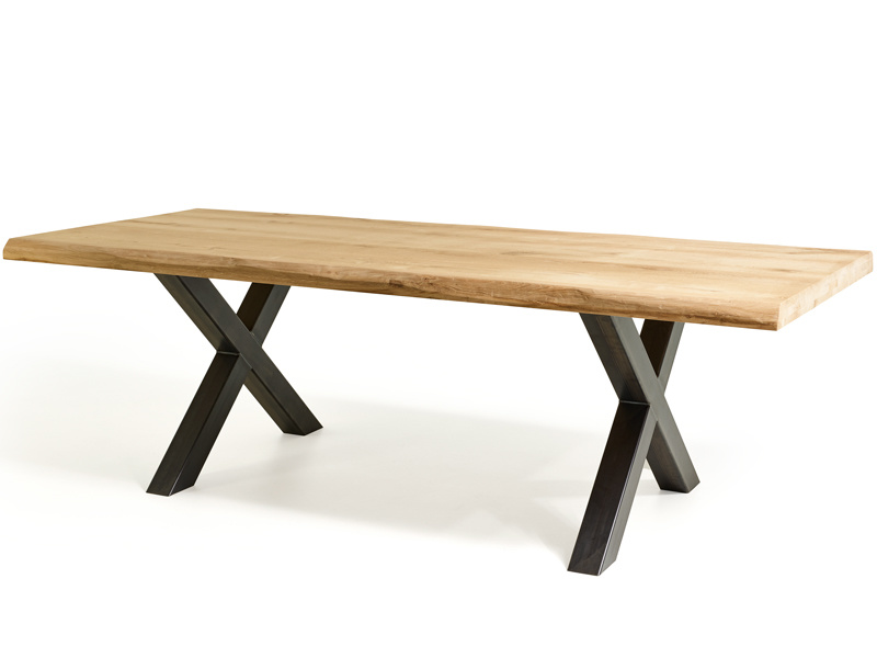 De Darneo moderne boomstamtafel combineert natuurlijke elegantie met een eigentijdse uitstraling. Het rechthoekige blad van 240 bij 100 cm is gemaakt van hoogwaardig Frans eiken met karaktervolle noesten, wat elke tafel een uniek en warm karakter geeft. De kunstmatige boomstamrand benadrukt het ambachtelijke gevoel van echt hout, terwijl de zwarte X-poot zorgt voor een moderne, stoere balans. Dankzij de SKYLT-afwerking blijft de natuurlijke houtkleur prachtig zichtbaar en goed beschermd.
