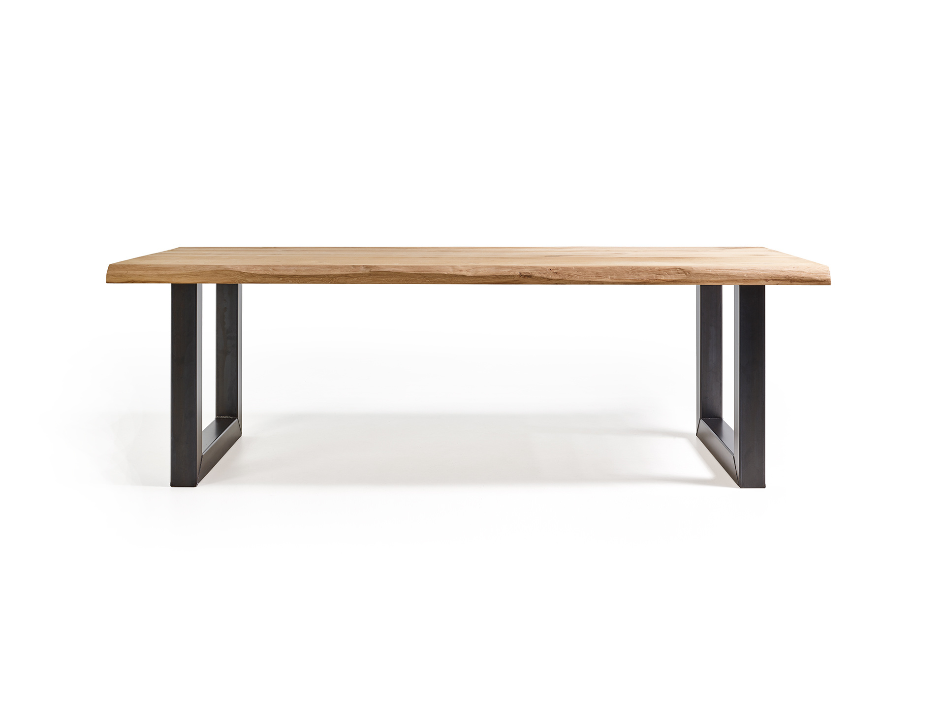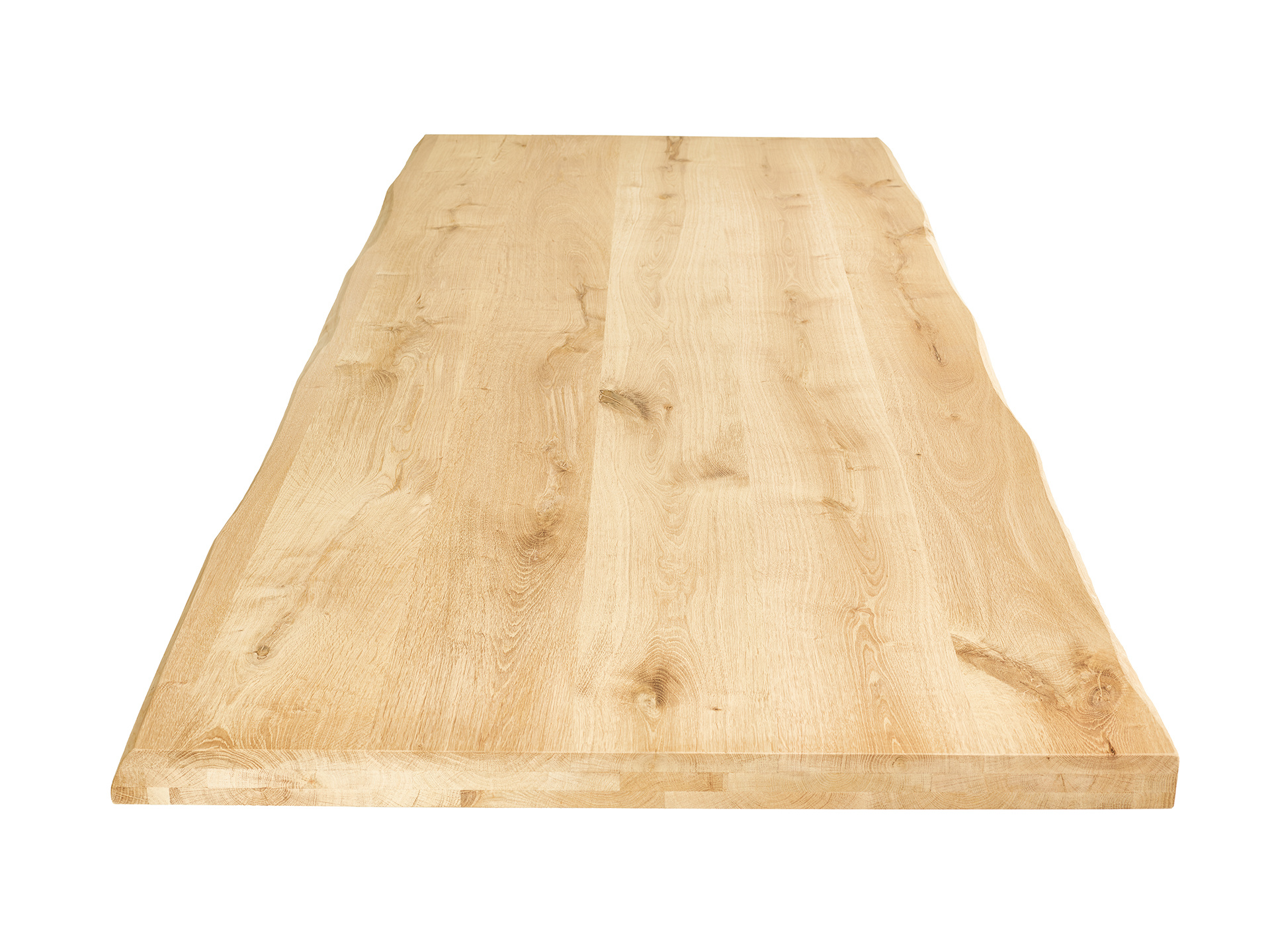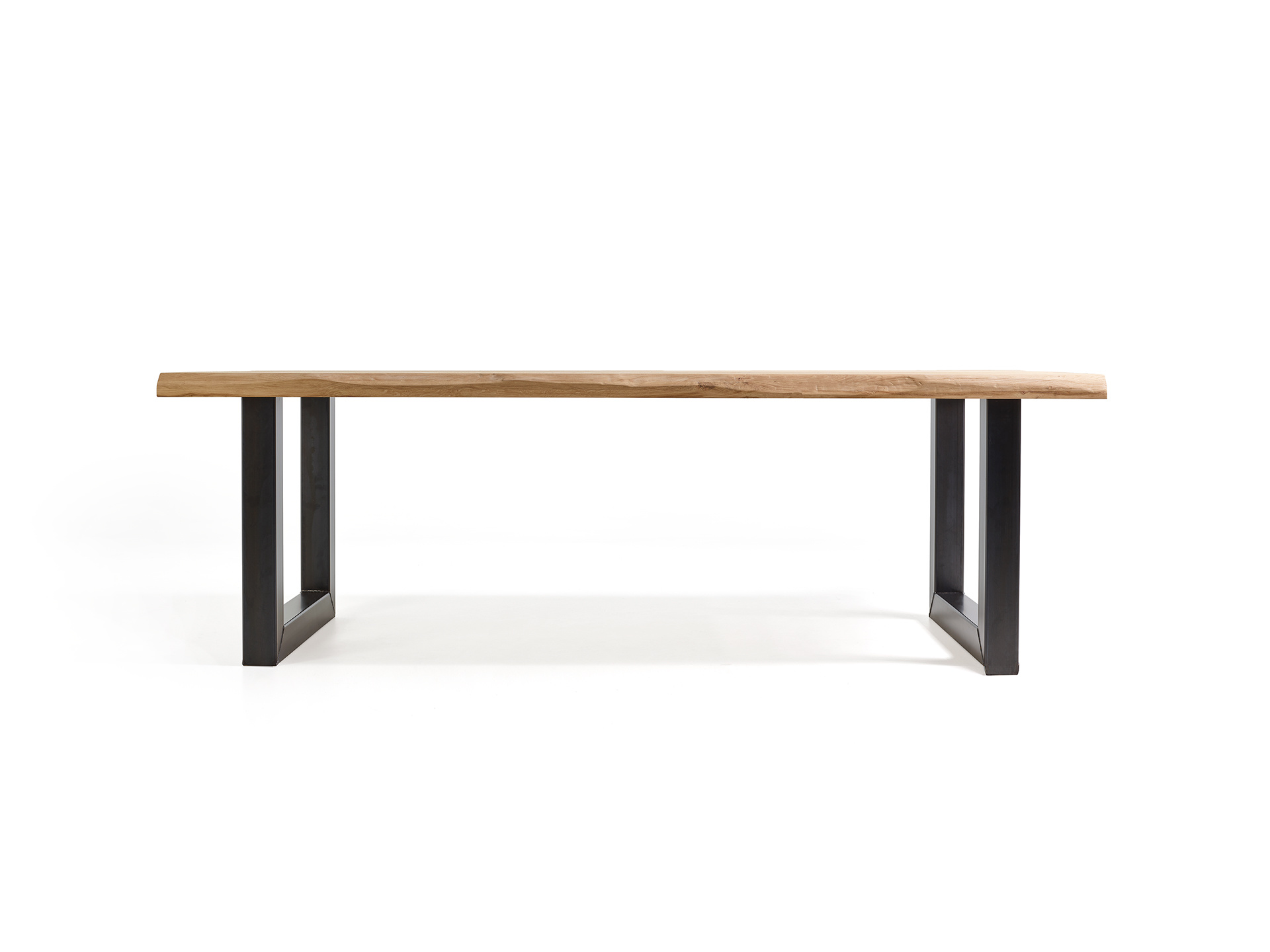 De Merlo natuurlijke boomstamtafel brengt het karakter van echt eikenhout tot leven in een stijlvolle, robuuste vorm. Het rechthoekige blad van 240 bij 100 cm is vervaardigd uit Frans eiken met prachtige noesten, wat zorgt voor een warme, authentieke uitstraling. De kunstmatige boomstamrand benadrukt de natuurlijke lijnen van het hout en geeft de tafel een ambachtelijke uitstraling. De zwarte U-poot voegt een modern contrast toe, terwijl de SKYLT-afwerking de natuurlijke houtkleur perfect behoudt.