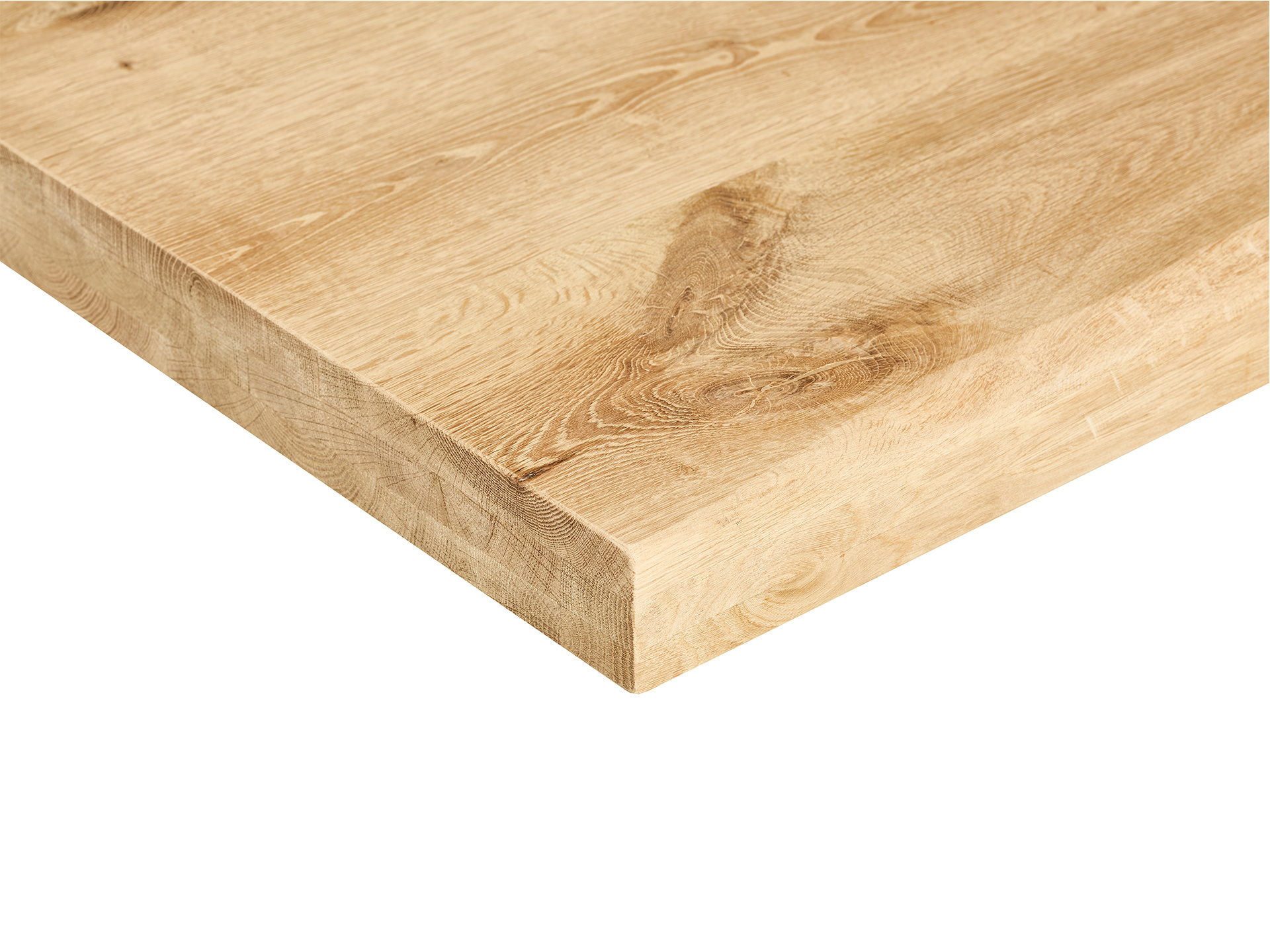 Voorbeeld: Een tafelblad van 2 cm met een opgedikte tafelrand van 6 cm oogt als een tafelblad dat 6 cm dik is. Dit is dus omdat de randen van het tafelblad 6 cm dik zijn.