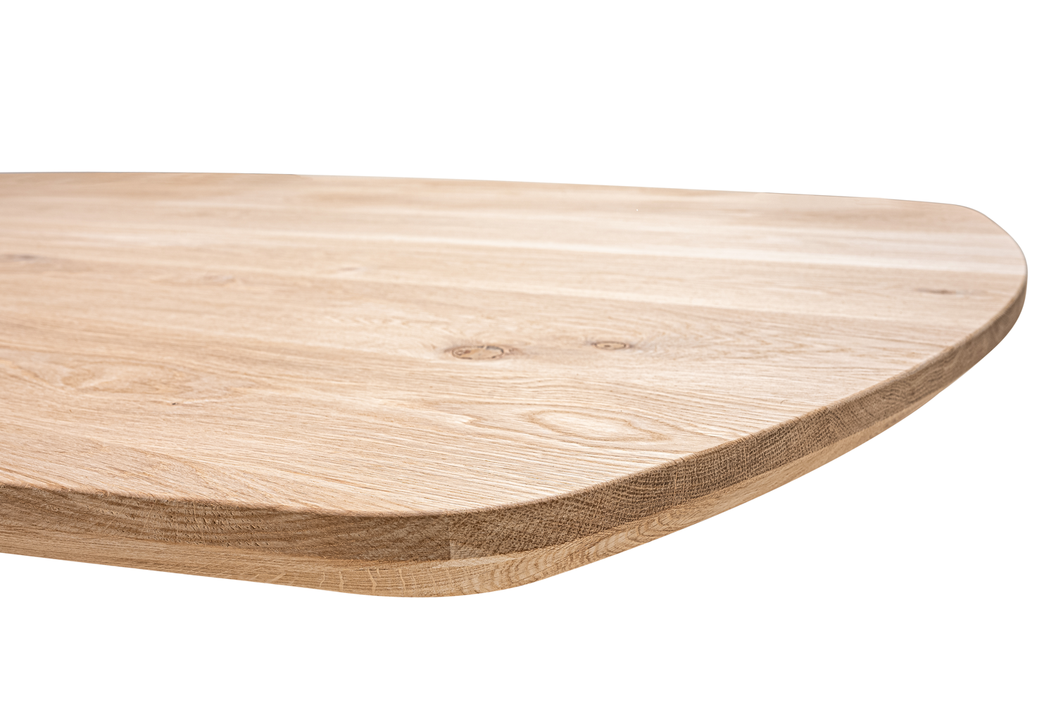 Voorbeeld: Een tafelblad van 2 cm met een opgedikte tafelrand van 6 cm oogt als een tafelblad dat 6 cm dik is. Dit is dus omdat de randen van het tafelblad 6 cm dik zijn.
