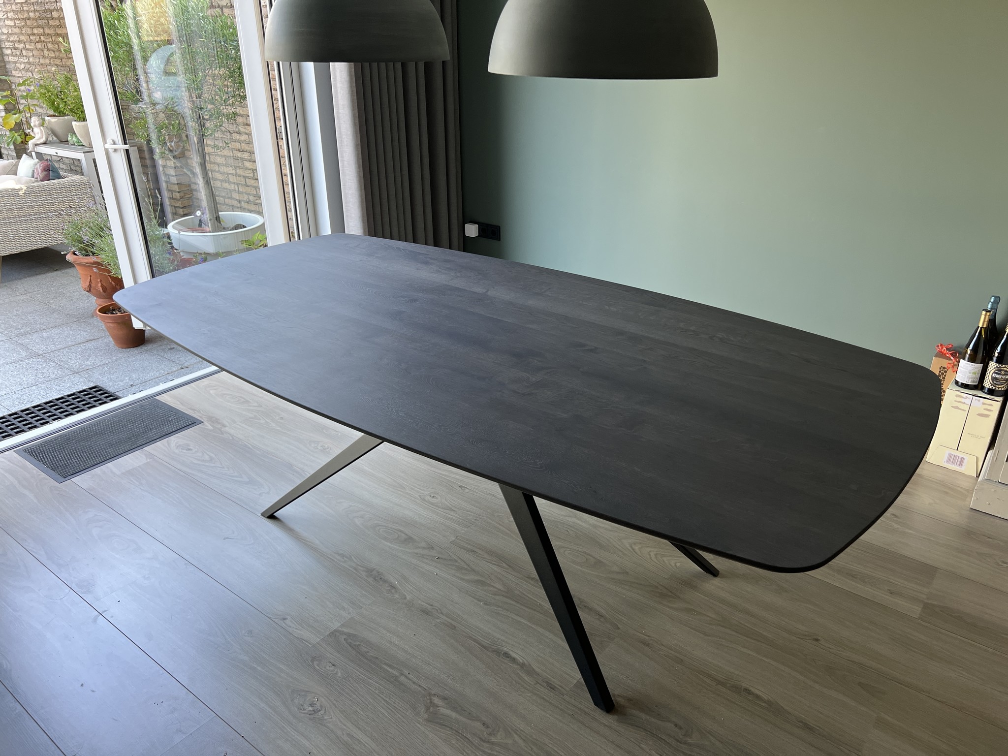 Kiest u voor deze optie, dan wordt uw tafel geborsteld. Eventuele opgevulde noesten zullen gedeeltelijk hun vulling verliezen als gevolg van het borsteleffect. Ons advies is om bij de kleur Zwart - mat te selecteren voor borstelen, zodat de kleur volledig tot zijn recht komt.