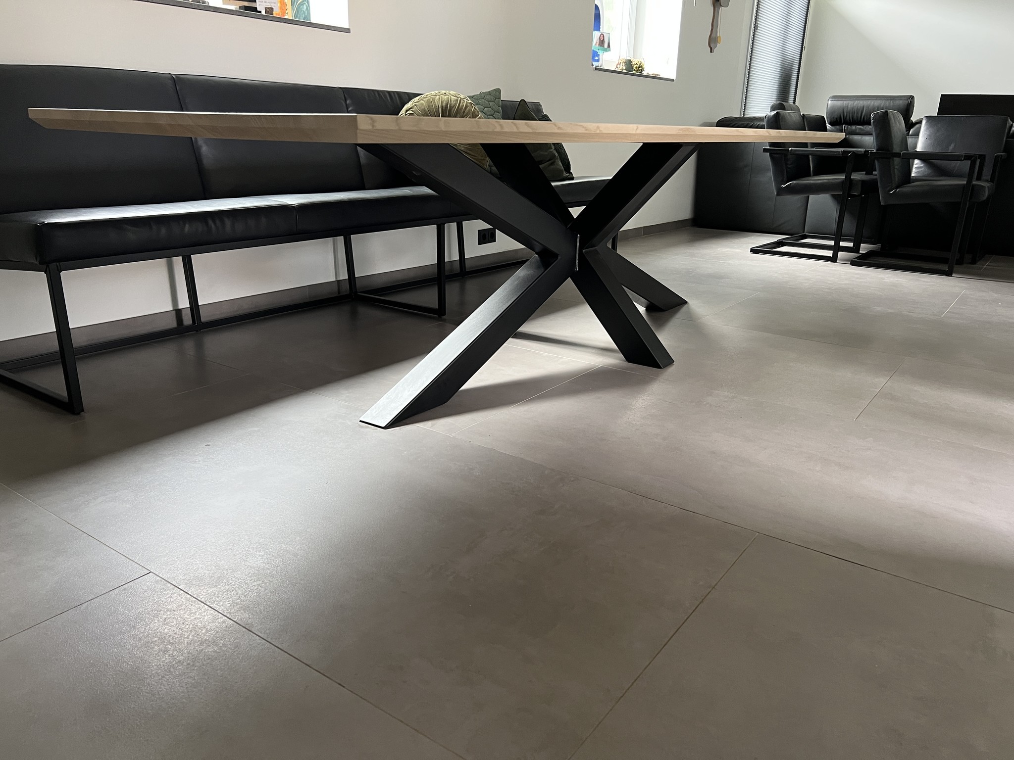 Kiest u voor deze optie, dan wordt uw tafel geborsteld. Eventuele opgevulde noesten zullen gedeeltelijk hun vulling verliezen als gevolg van het borsteleffect. Ons advies is om bij de kleur Zwart - mat te selecteren voor borstelen, zodat de kleur volledig tot zijn recht komt.