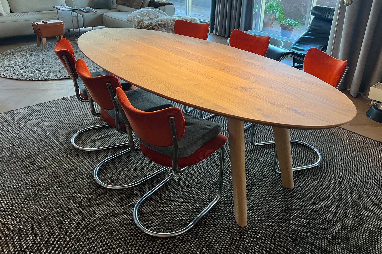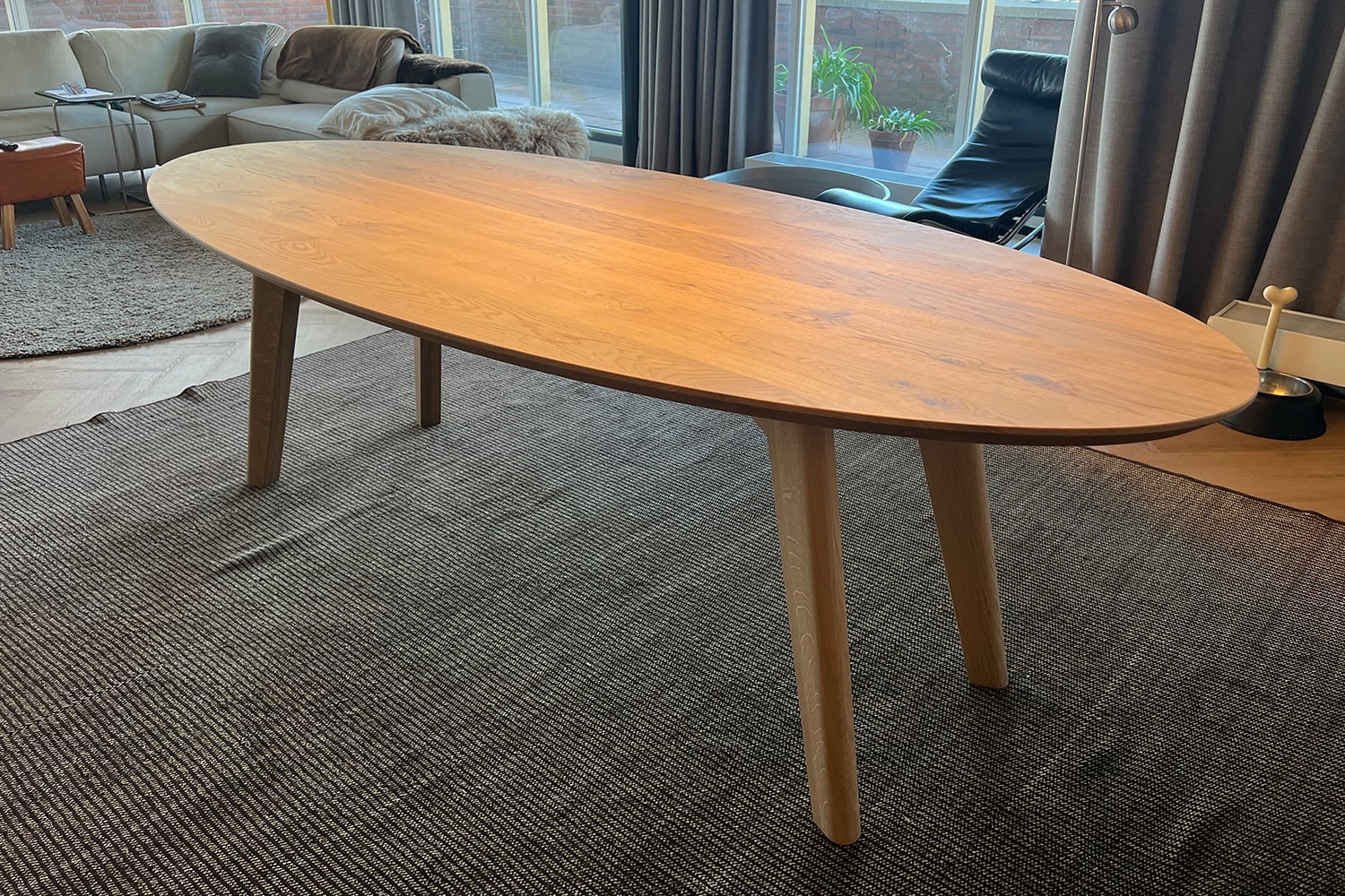 Wij hanteren een standaard tafelhoogte van ±76 cm. Dit is de hoogte gemeten vanaf de grond tot aan het bovenkant tafelblad. Wenst u een andere hoogte voor uw tafel? Geen probleem, neem dan contact op met ons voor een offerte op maat.