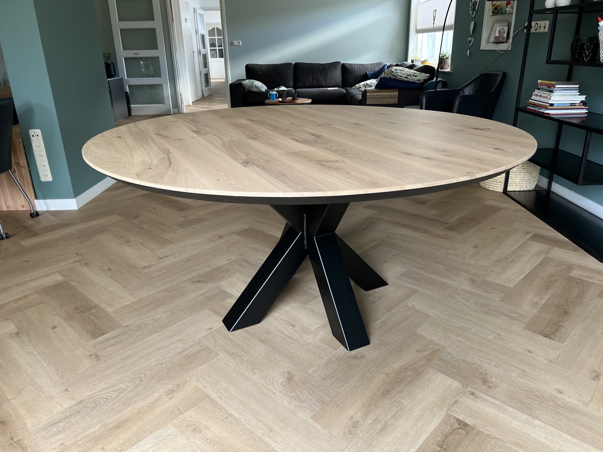Wil je de Elarin helemaal afstemmen op jouw persoonlijke woonstijl? Bij Houtentafelshop.nl stel je deze tafel eenvoudig naar wens samen: van het aanpassen van de diameter en kleur tot het kiezen van een ander onderstel of een unieke afwerking. Zo creëer je een tafel die perfect past bij jouw interieur en manier van leven. Met ambacht en maatwerk zorgen wij ervoor dat jouw eettafel een echt pronkstuk wordt.