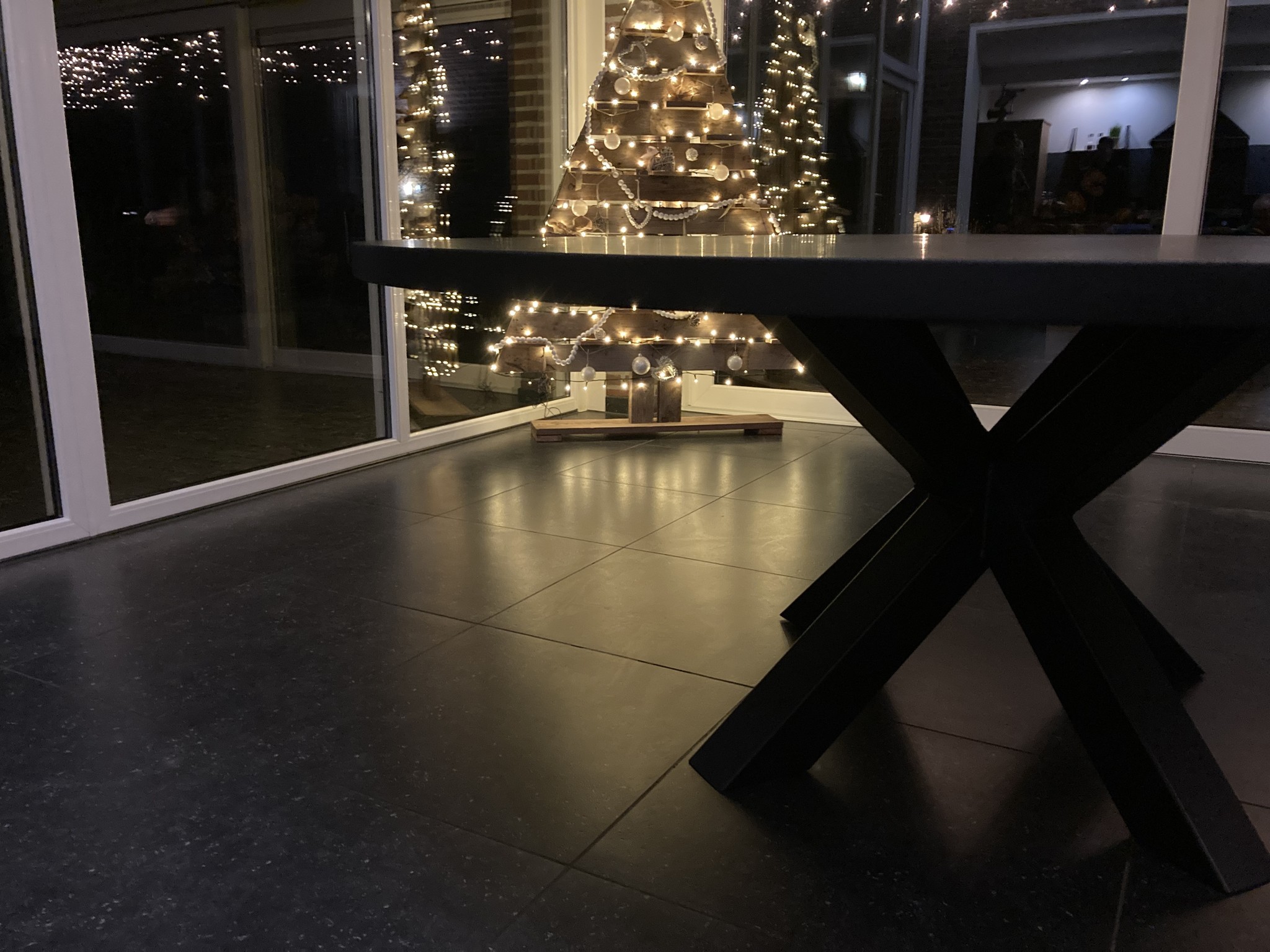 Kiest u voor deze optie, dan wordt uw tafel geborsteld. Eventuele opgevulde noesten zullen gedeeltelijk hun vulling verliezen als gevolg van het borsteleffect. Ons advies is om bij de kleur Zwart - mat te selecteren voor borstelen, zodat de kleur volledig tot zijn recht komt.
