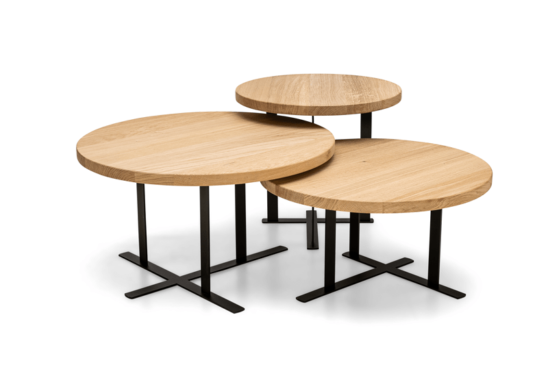 De Zorin salontafelset bestaat uit drie ronde, volmassieve bladen van Frans eiken met een foutloos karakter en weinig tot geen noesten. Met diameters van 70 cm, 60 cm en 50 cm en bijbehorende hoogtes van 45 cm, 38 cm en 33 cm, creëer je speelse lagen en een dynamische uitstraling in je woonkamer. De natuurlijke SKYLT-kleur van het hout benadrukt de warme, moderne uitstraling, terwijl de strakke lijnen en ronde vormen een tijdloos design combineren met functionaliteit.
