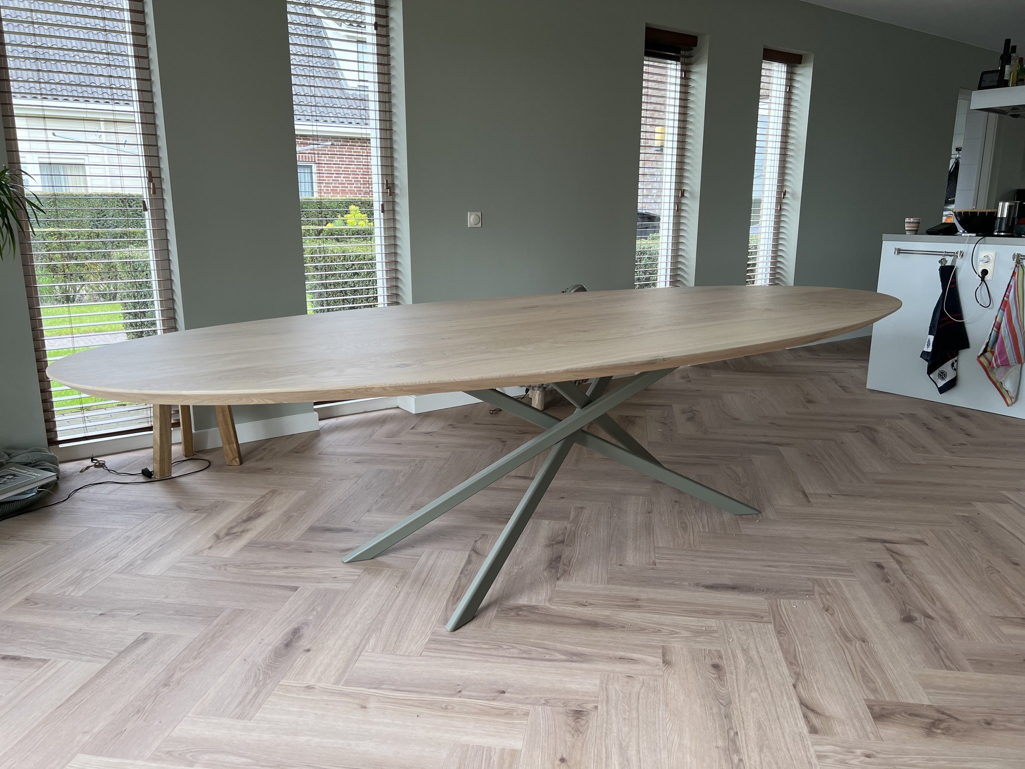 Wil je een tafel die helemaal aansluit bij jouw woonstijl en wensen? Bij Houtentafelshop.nl kun je de Rimora volledig naar eigen smaak samenstellen, van afmetingen en kleur tot onderstel en afwerking. Zo kun je bijvoorbeeld kiezen voor een andere RAL-kleur voor de Mikado tafelpoot, een unieke bladafwerking of een andere afmeting. Zo creëer je een speels en ambachtelijk meubel dat perfect past bij jouw interieur.