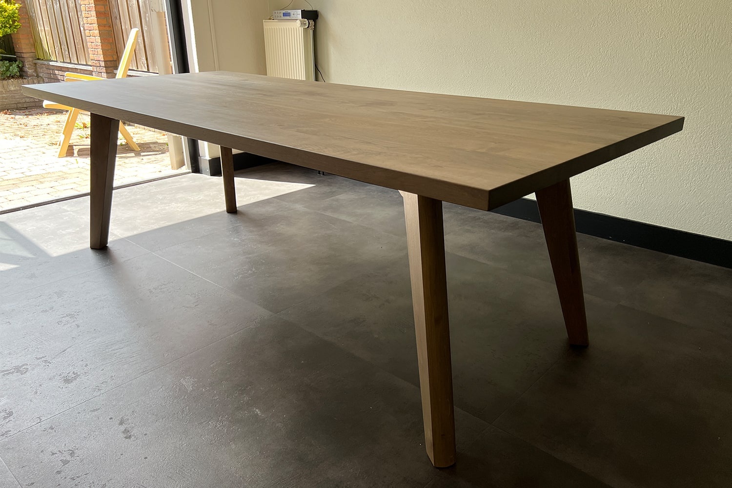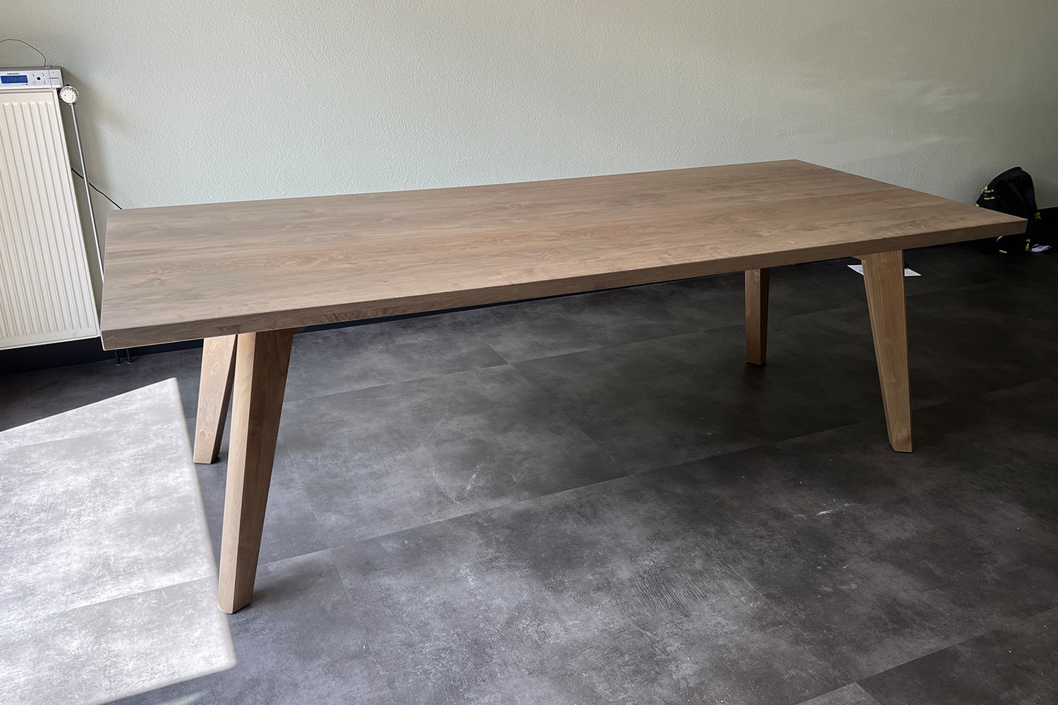 Wij hanteren een standaard tafelhoogte van ±76 cm. Dit is de hoogte gemeten vanaf de grond tot aan het bovenkant tafelblad. Wenst u een andere hoogte voor uw tafel? Geen probleem, neem dan contact op met ons voor een offerte op maat.