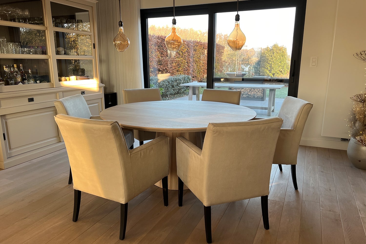 Wil je jouw eettafel tot in detail afstemmen op je interieur? Bij Houtentafelshop.nl stel je de Bruno volledig naar wens samen: van de diameter en afwerking tot de kleur en het onderstel. Zo kun je kiezen voor een warmere tint, een andere pootvorm of een unieke randafwerking die past bij jouw stijl. Met ons vakmanschap en maatwerk creëer je een tafel die niet alleen praktisch is, maar ook een persoonlijk statement in jouw eetkamer vormt.