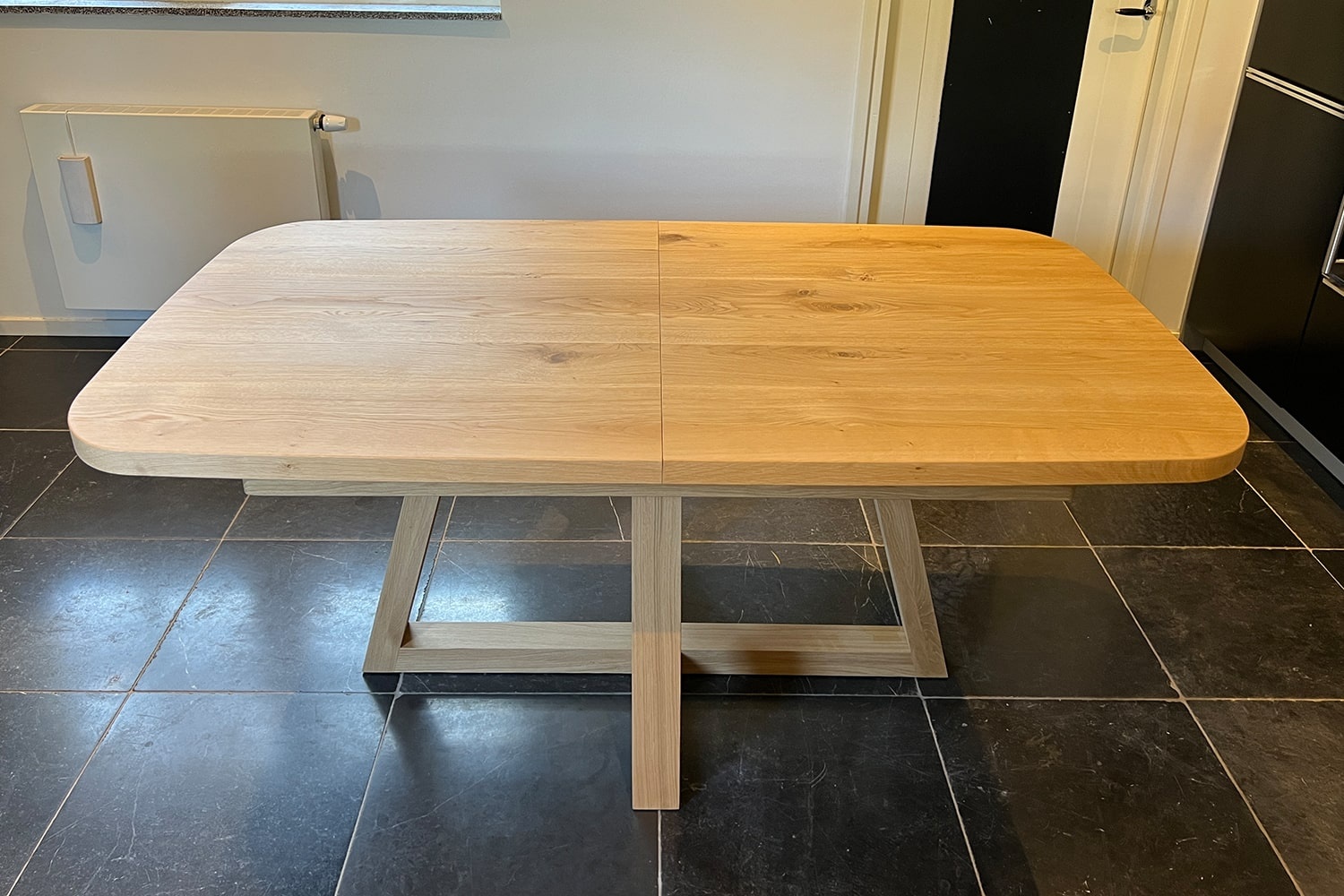 Dankzij het slimme uitschuifmechanisme creëer je in een handomdraai extra zitruimte. Het afgebeelde model is 170cm en verlengbaar naar 210cm. Bij deze tafel zijn ook andere maatvoeringen en tafelpoten mogelijk. Staat jouw gewenste maatvoering of tafelpoot er niet bij? Neem dan contact met ons op voor alle mogelijkheden.