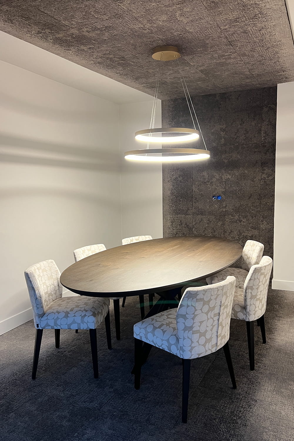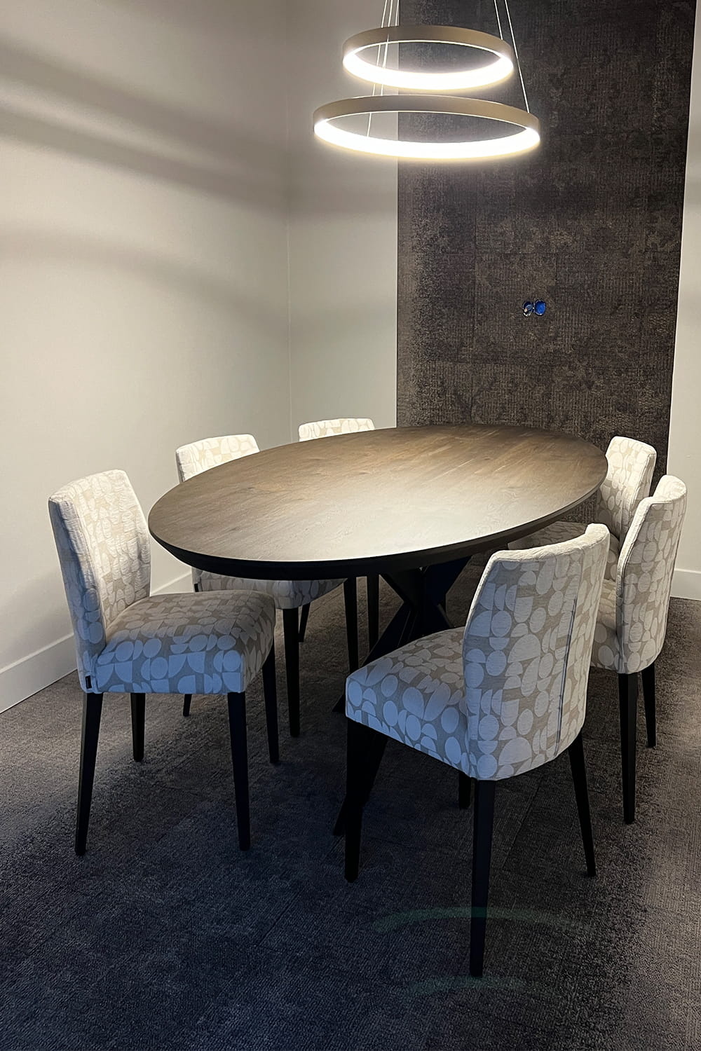 Vergadertafel Orion heeft een elegante en warme uitstraling dankzij het ovale blad en de diepe Deer Brown kleur. Het volmassieve blad van Frans eiken is uitgevoerd met een subtiele kern van 2 cm en een opgedikte rand van 4 cm, wat zorgt voor een slanke look met een robuust gevoel. De natuurlijke noesten geven het hout karakter, terwijl het grote facet aan de rand het geheel verfijnd afwerkt. Met zijn afmetingen van 240 x 130 cm en de moderne spinpoot met platte koker vormt deze tafel een stijlvolle en praktische basis voor iedere vergaderruimte. Bij al onze vergadertafels is randapparatuur niet standaard inbegrepen, maar kan dit, indien gewenst, tegen meerprijs geïntegreerd worden.