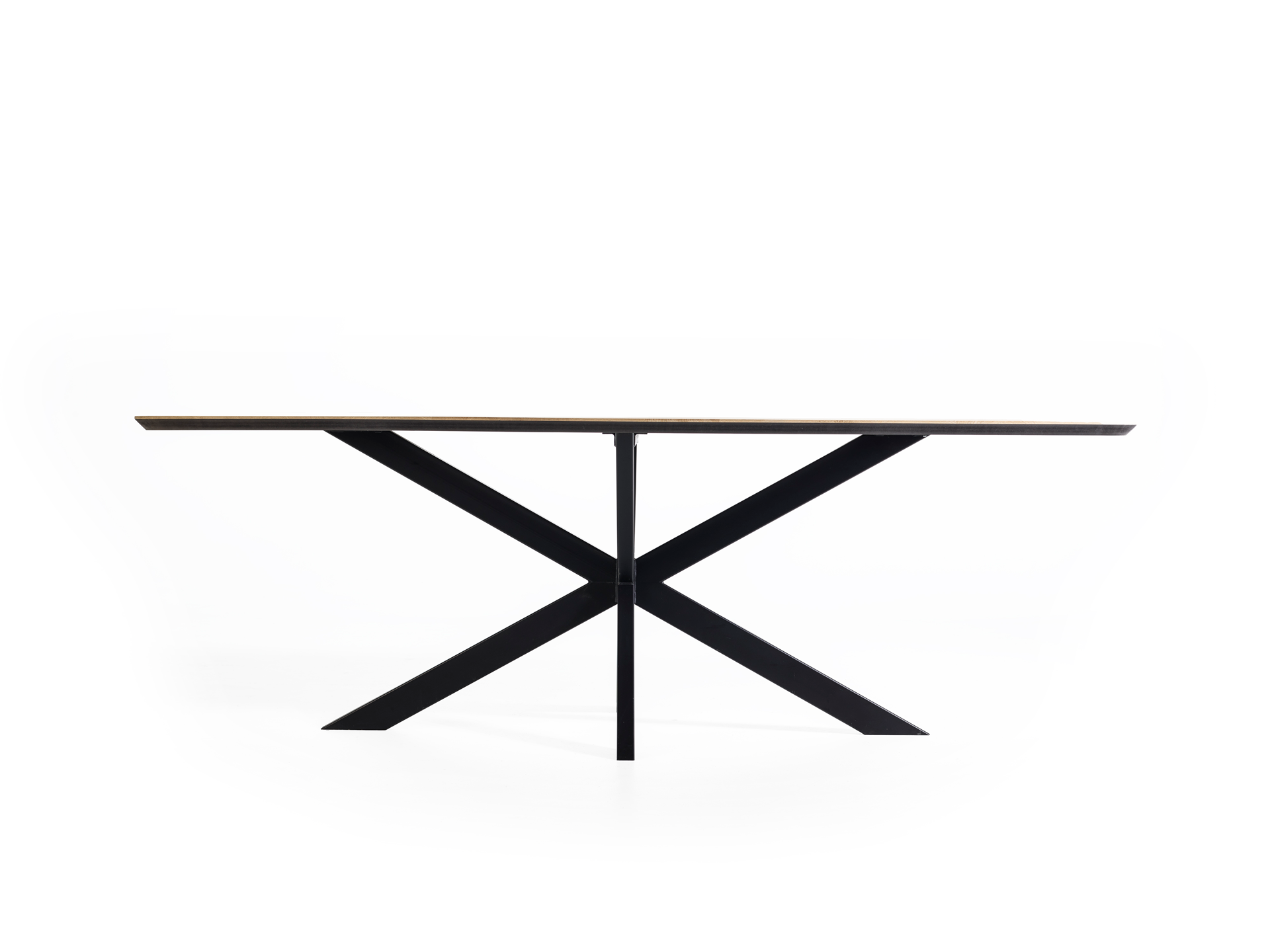 De Navin ovale visgraat tafel combineert tijdloze elegantie met een natuurlijke uitstraling dankzij het warme SKYLT-eikenhout. Het 33 mm dikke blad met visgraatmotief ligt op een stevig zwart MDF onderstel, wat zorgt voor een strak en modern contrast. Met een lengte van 220 cm en een breedte van 100 cm biedt deze tafel voldoende ruimte voor gezellig samenzijn. De zwarte spinpoot met platte koker geeft de tafel een eigentijdse, stabiele basis die perfect aansluit bij diverse interieurstijlen.