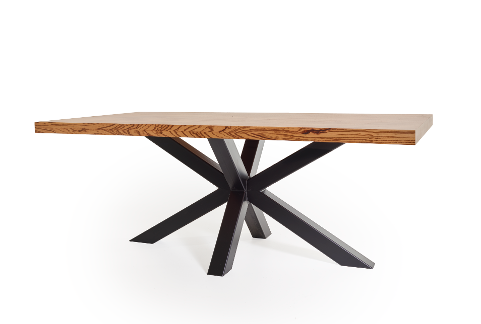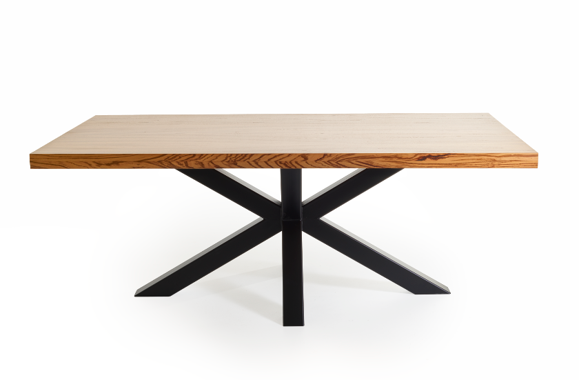 Het Zebrano hout is ook bekend in de houtafwerking bij "high-end" automerken zoals Mercedes-Benz. De uitgelichte tafel is bewerkt met meerdere hoogglans laklagen, zodat de unieke structuur in het blad extra geaccentueerd wordt.